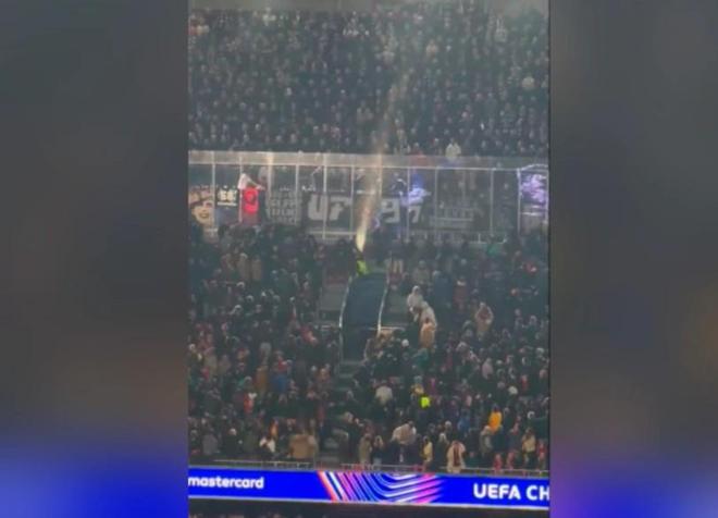 科貝記者:法蘭克福球迷往巴薩球迷區(qū)投擲雜物甚至發(fā)射焰火